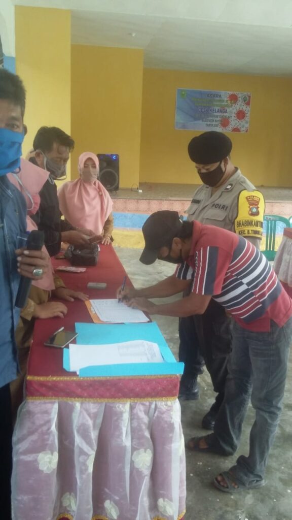 Kegiatan tersebut dihadiri oleh Kasi Pemerintahan Yudo Ananto, Sekdes Kelanga Hazan, Ketua BPD Desa Kelanga Muktar, Bhabinkamtibmas Desa Kelanga Aiptu G. Sembiring dan Masyarakat Penerima BLT Dana Desa. (iin).