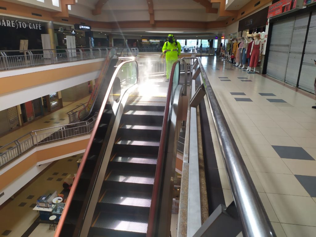 Hari Ini, Giliran Kawasan Panbil Mall yang Disemprot dan Dibersihkan Polisi