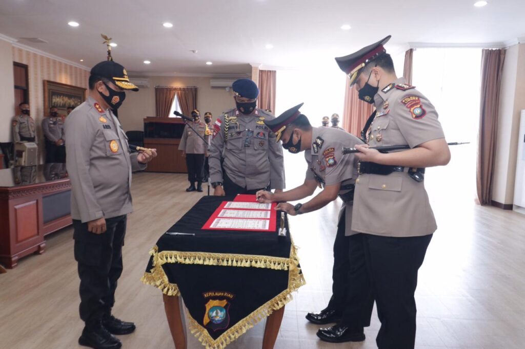 PROBATAM.CO, Batam- Serah terima jabatan Kapolres Tanjung Pinang dan Kapolres Lingga dipimpin langsung oleh Kapolda Kepri Irjen Pol Dr. Aris Budiman, M.Si di ruang Kerja Kapolda Kepri pada Selasa (20/10/2020) pukul 08.00 wib, dihadiri oleh Wakapolda Kepri, Irwasda Polda Kepri dan Pejabat Utama Polda Kepri.