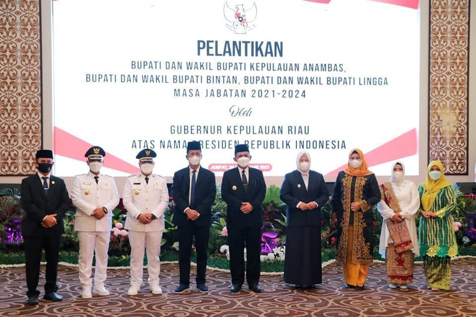 PROBATAM.CO, Tanjungpinang – Bupati dan Wakil Bupati Kabupaten Bintan, Kabupaten Kepulauan Anambas dan Kabupaten Lingga resmi dilantik oleh Gubernur Kepri, Ansar Ahmad di Tanjungpinang, Jumat (26/o2/2021).