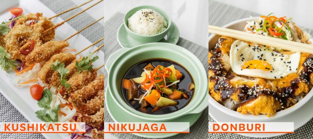 Kushi yang berarti tusuk sate dan katsu adalah makanan yang goreng. Di HARRIS Batam Center Kuhikatsu yang ditawarkan adalah ikan dan udang yang disajikan dengan saos kikoman Nikujaga adalah menu yang terdiri dari daging sapi, kentang dan wortel dimasak dengan air kaldu yang mengandung rumput laut, katsuodasi, kikoman dan sos soya.