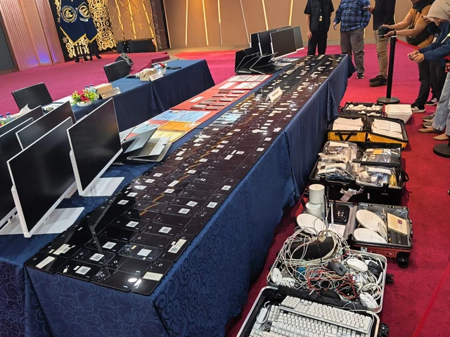 Dalam penggerebekan, petugas menyita ratusan unit telepon genggam, belasan laptop dan komputer, serta perangkat jaringan internet yang digunakan untuk menjalankan kejahatan siber tersebut. Seluruh barang bukti kini tengah dianalisis oleh tim digital forensik.