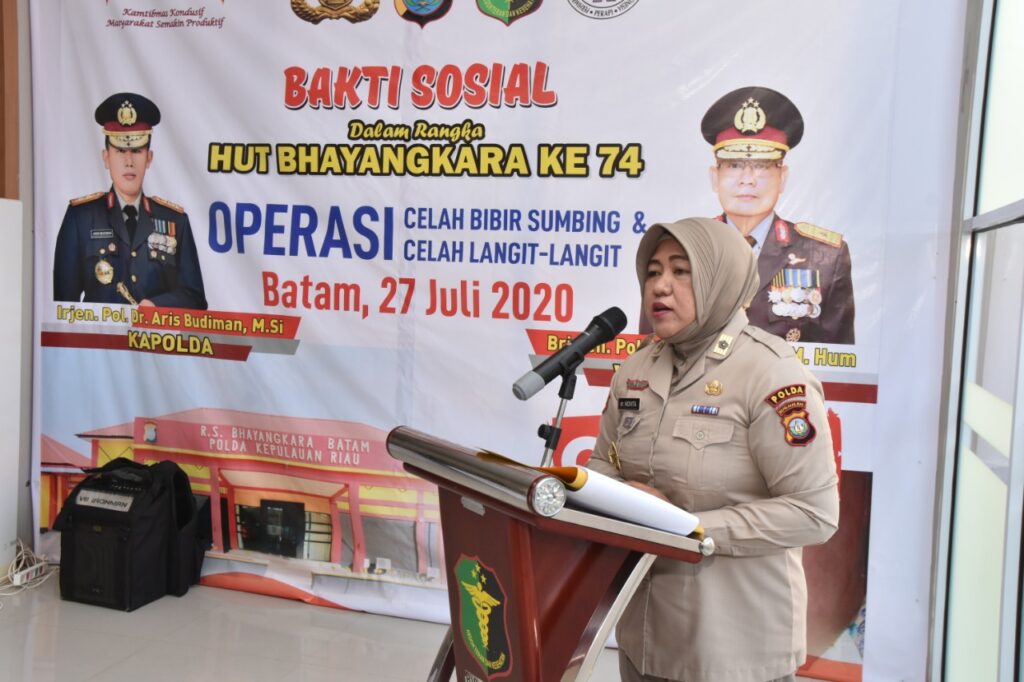 “Bakti Sosial ini bekerjasama dengan Smile Train Indonesia, ini pratama kali dilaksanakan di Rumah Sakit Bhayangkara Batam, dan kegiatan ini merupakan bentuk kepedulian pelayanan polri kepada masyarakat terkhusus dibidang kesehatan” Tutur Kepala Rumah Sakit Bhayangkara Batam dr. Rr. Novita Wahyu Handayani