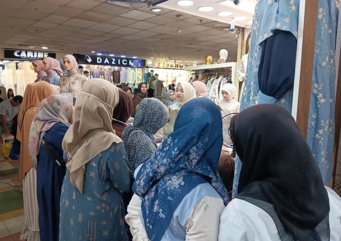 Namun yang menjadi perhatian, kepadatan biasanya terjadi di dekat toko-toko yang menjual pakaian muslim. Misalkan saja toko yang menjual gamis dan mukena yang paling banyak diserbu kelompok ibu-ibu.