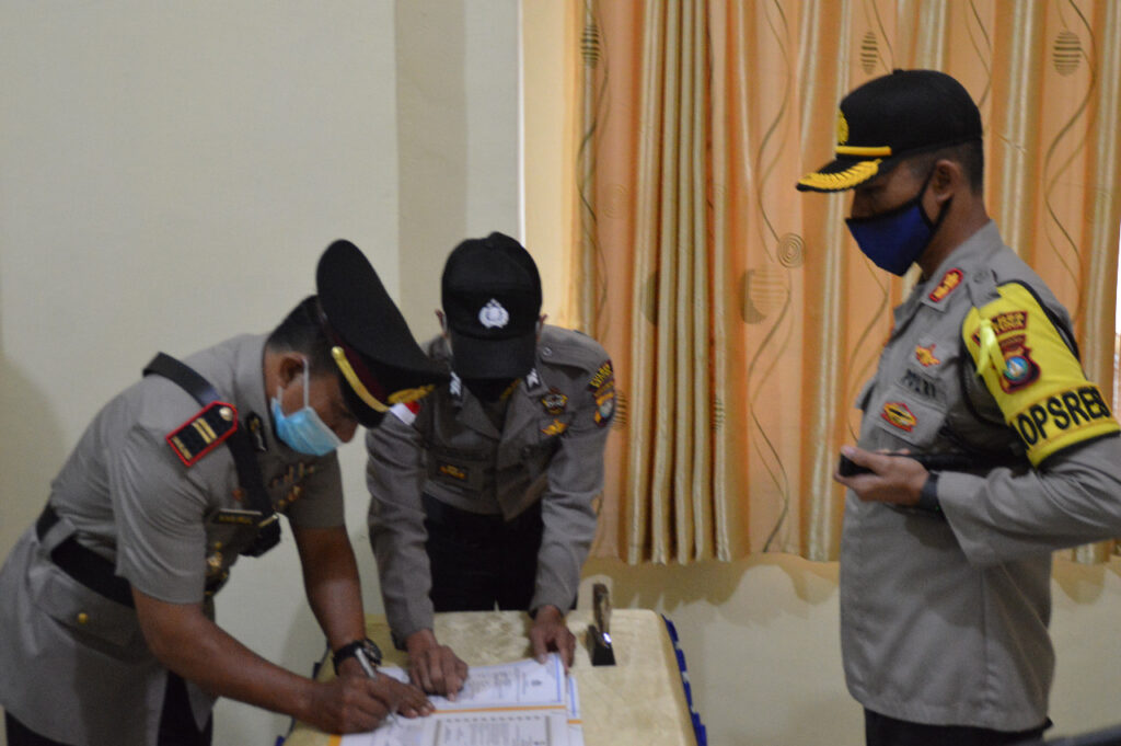 Kapolres Natuna AKBP Ike Krisnadian menyaksikan salah seorang Kasat yang sertijab di Mapolres Natuna, Kamis (25/6/2020). (Photo: hms)