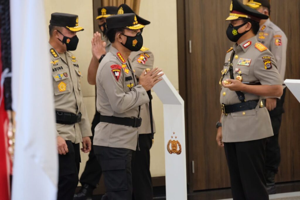 Kapolri Jendral Polisi Drs Idham Azis M.Si Resmi melantik Kapolda Banten Irjen Pol Dr Rudy Heriyanto SH, MH, M.B.A menggantikan Irjen Pol Drs Fiandar di gedung Rupatama Mabes Polri Jalan Trunojoyo, Kebayoran Baru Jakarta Selatan, Jakarta, pukul 10.00 WIB, Selasa (5/1/2021). (Photo: istimewa)