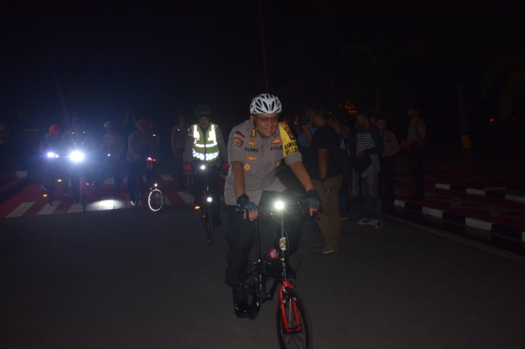Usai dilepas, Purwolelono yang didampingi Wadir Binmas AKBP Edi Suryadi bersama 9 personel patroli sepeda Polda Kepri bergerak menuju sejumlah tempat keramaian.
