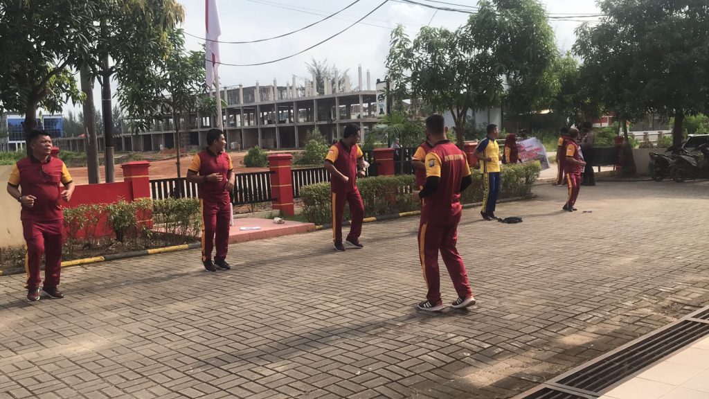 PROBATAM.CO, Batam- Kepala Kepolisian Sektor (Kapolsek) Bengkong, Inspektur Polisi Satu (Iptu) Mardalis beserta personel melakukan olahraga pagi di halaman depan Markas Kepolisian Sektor (Mapolsek) Bengkong, Jumat (30/9/2022) pagi.