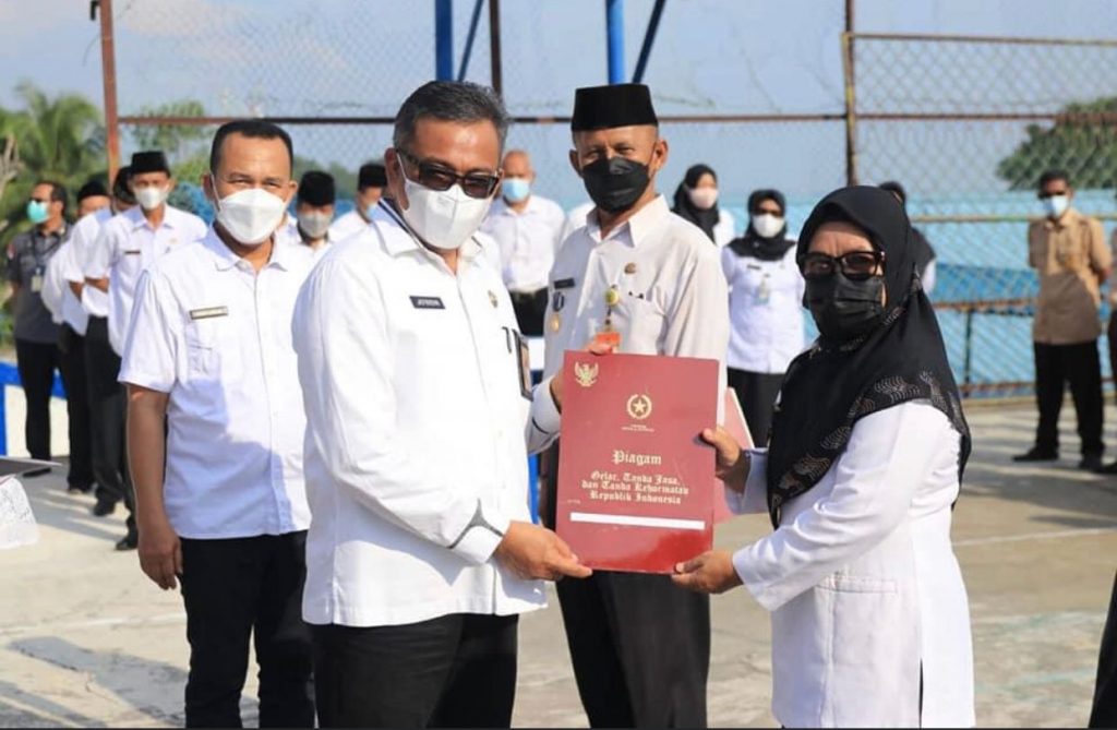 PROBATAM.CO, Batam– Sekretaris Daerah (Sekda) Kota Batam, Jefridin menyerahkan tanda penghormatan Satya Lencana Karya Satya dari Presiden RI Joko Widodo kepada guru 11 guru di Kecamatan Belakangpadang, Kota Batam.