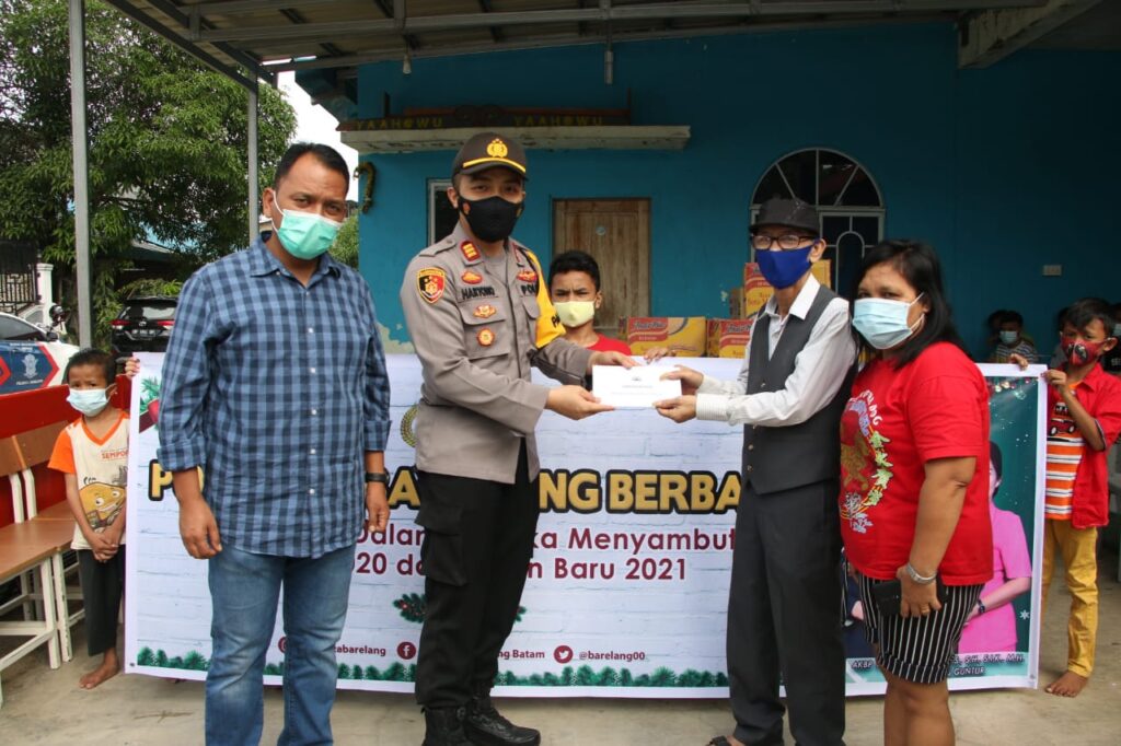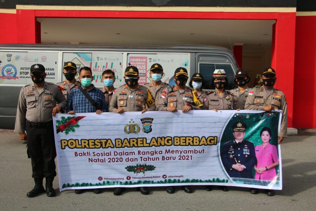 PROBATAM.CO, Batam– Menyambut Perayaan Hari Natal Tahun 2020 dan Tahun Baru 2021, Polresta Barelang melakukan bakti sosial memberikan bantuan sembako kepada warga kurang mampu dan terdampak Covid-19, Kamis (17/12/2020), sekira pukul 08.00 Wib.