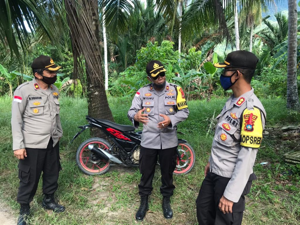 Kapolresta Natuna AKBP Ike Krisnadian didampingu Wakapolres Natuna Kompol Wisnu Edhi Sadono, Kapolsek Bunguran Timur Kompol M. Sibarani. (Photo:dok/hms)