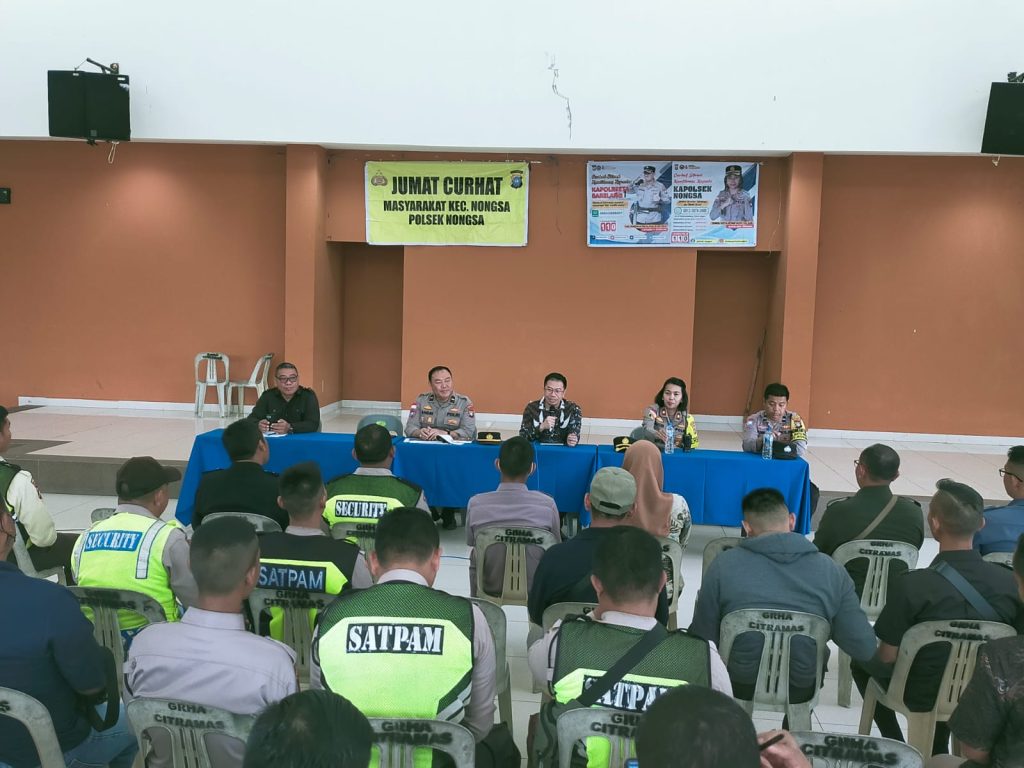 Kali ini, Jumat (19/1/2024) pukul 10.00 WIB tadi Polsek Nongsa dipimpin Kapolsek Kompol Restia Octane Guchy, SE, S.IK, MM didampingi Kanit Binmas Polsek Nongsa Ipda Andri Marsudi, SH menggelar Jumat Curhat Kamtibmas Bersama Jasa Keamanan Kawasan Industri Kabil di Gedung Graha Citra Mas Kabil Kecamatan Nongsa, Kota Batam.