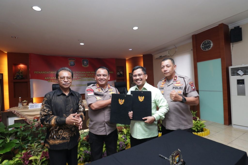 PROBATAM.CO, Batam – Kepolisian daerah (Polda) Kepulauan Riau bersama Pemerintah Provinsi (Pemprov) Kepulauan Riau melaksanakan penandatanganan naskah perjanjian hibah daerah (NPHD) jelang pengamanan Pilkada Tahun 2020 antara Pemprov Kepri dengan Kepolisian Daerah (Polda) Kepri.