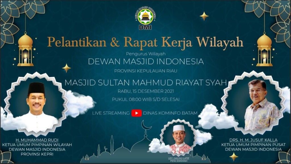 “Pelantikan nanti akan dilakukan langsung oleh Ketua DMI Pusat, Jusuf Kalla. Kita juga mendatangkan Ustaz Das’ad Latif sebagai penceramah,” ujar Ketua Panitia Pelantikan Ketua DMI Kepri, Firmansyah, Jumat (10/2021).