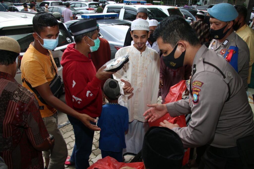 Dalam penyampaian, Kapolresta Barelang Polda Kepri AKBP Yos Guntur Yudi, F.S, SH, S.IK, MH yang diwakili Wakapolresta Barelang AKBP Junoto, S.IK, membagikan 130 paket Nasi kotak yang diserahkan kepada Jamaah Solat Jum’at Masjid Al- Ikhlas Sekupang, Kota Batam siang hari ini.