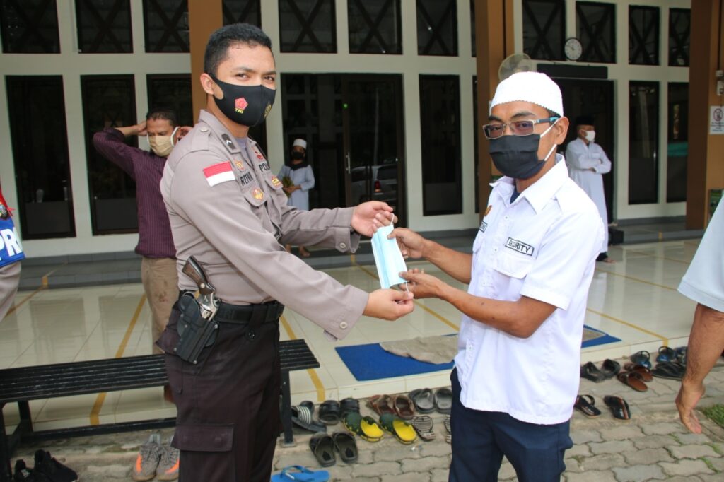 PROBATAM.CO, Batam- Polresta Barelang kembali menggelar bakti sosial membagikan masker dan nasi kota kepada masyarakat di Mesjid Al Iklas Sangrilla, Sekupang, Kota Batam, Kepulauan Riau (Kepri), Jumat (25/9/2020) siang.