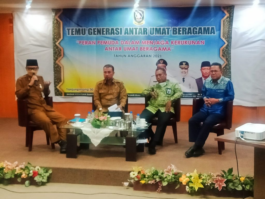 Acara Temu Generasi Antar Umat Beragama Diselenggarakan oleh Badan Kesatuan Bangsa dan Politik Provinsi Kepulauan Riau. Dimana sebelum diskusi Acara dibuka oleh Kepala Badan Kesbangpol Kepri Dr. Ir Lamidi MM.