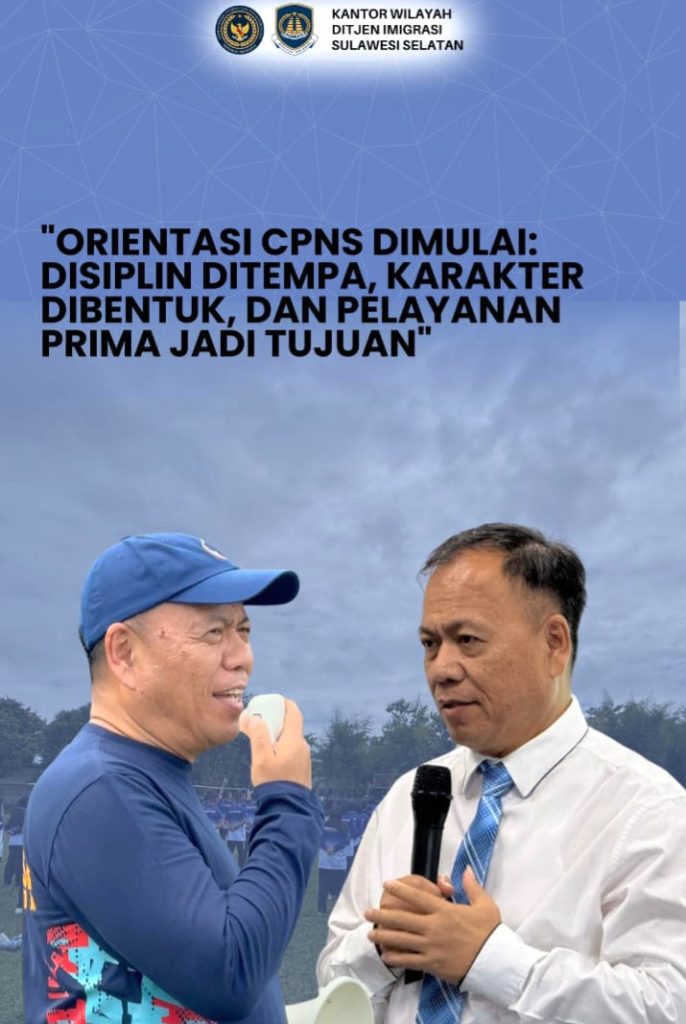 PROBATAM.CO, Makassar – Kepala Kantor Wilayah Direktorat Jenderal Imigrasi Sulawesi Selatan, Friece Sumolang membuka secara resmi pelaksanaan Orientasi Hari Pertama Calon Pegawai Negeri Sipil (CPNS) di Lingkungan Kanwil Ditjen Imigrasi Sulsel, di Lapangan Telkom Makassar, Selasa (3/6/2025).