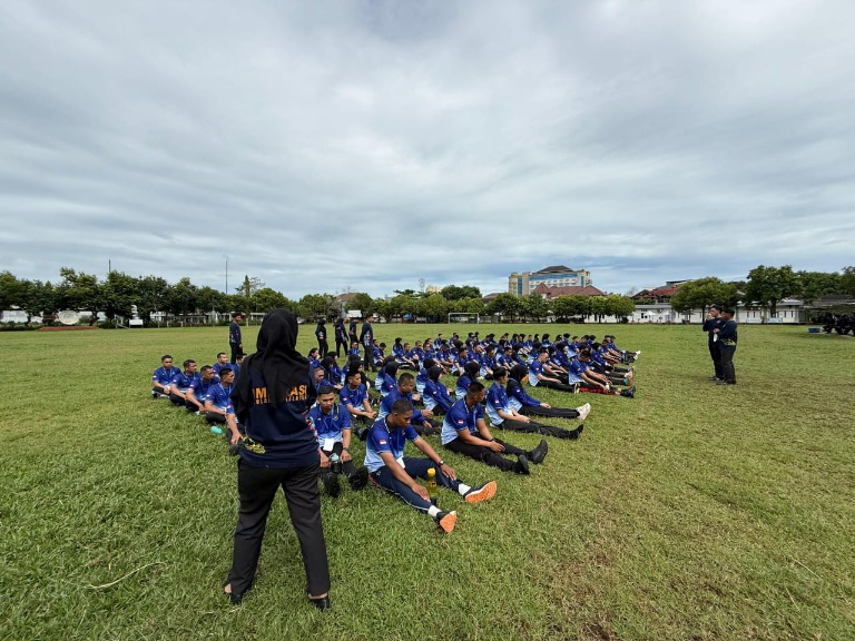 Setelah menerima materi pengantar, seluruh peserta CPNS diarahkan menuju Lapangan Telkom Makassar untuk melaksanakan latihan secara langsung.