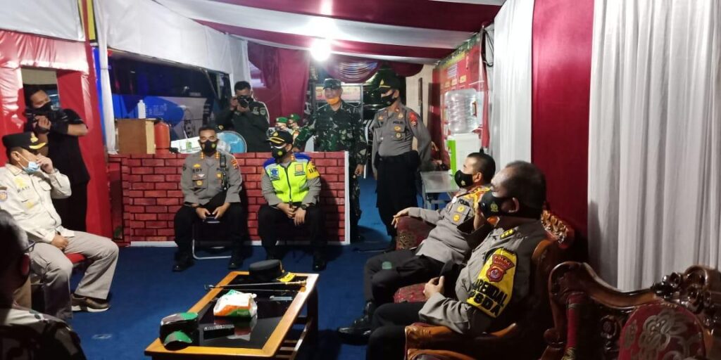PROBATAM.CO, Serang – Untuk memastikan kesiapan personel dalam menghadapi pengamanan malam tahun baru 2021, Kapolda Banten Irjen Pol Fiandar bersama Danrem 064/MY Brigjen TNI Gumuruh Winardjatmiko yang didampingi PJU Polda Banten, Dandim 0602/Serang dan Dandenpom Serang patroli kunjungi Pos Pelayanan (Yan) di Alun-alun Kota Serang, Provinsi Banten, Kamis (31/12/2020).