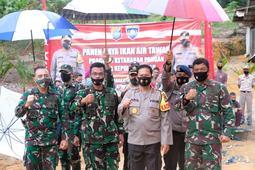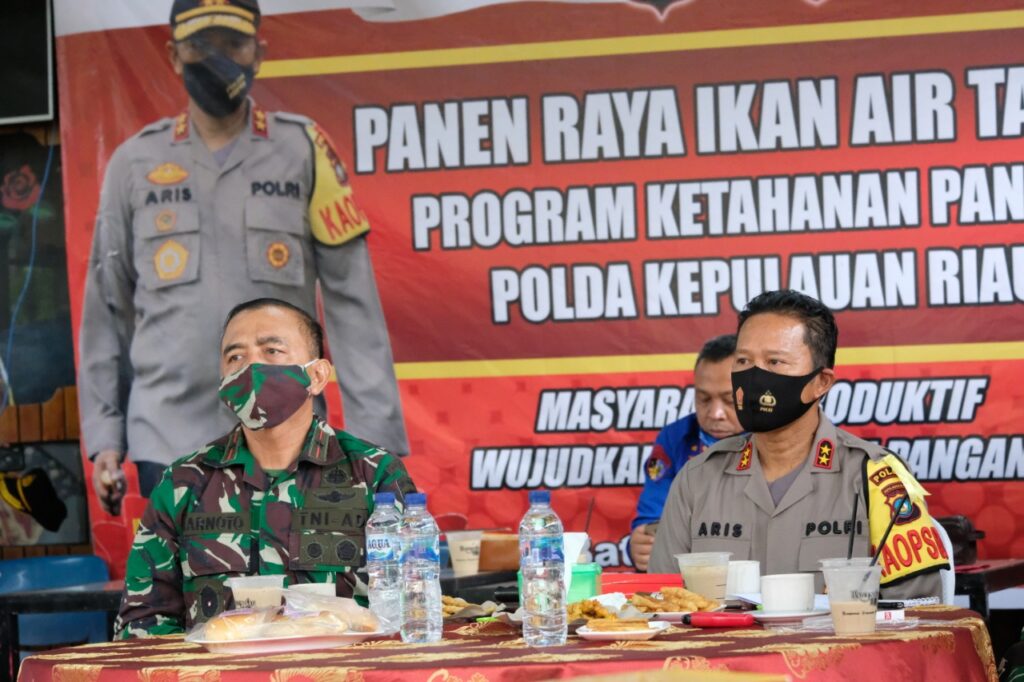 PROBATAM.CO, Batam – Kapolda Kepri Irjen Pol Dr. Aris Budiman, M.Si bersama dengan Danrem 033/WP Brigjen TNI Harnoto, S.Sos hadir pada Pesta Panen Raya Nusantara TNI-Polri bersama dengan Panglima TNI dan Kapolri secara Virtual di Kolam Ikan Mapolda Kepri, Kamis (9/7/2020).