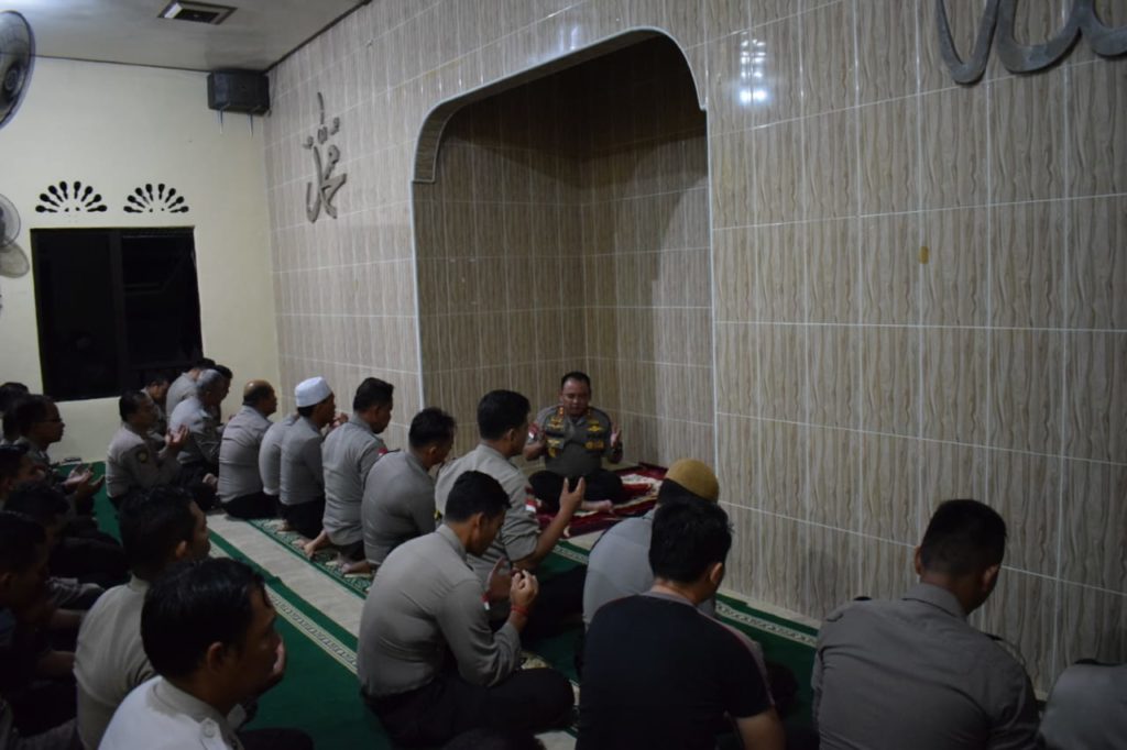 Selesai pelaksanaan pemberian arahan, Kapolda kepri berkesempatan mengimami sholat magrib berjamaah di Mushola Al-Jannah Polres Natuna. (zel)