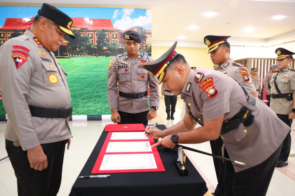 PROBATAM.CO, Batam – Kapolda Kepri Irjen. Pol. Drs. Tabana Bangun, M.Si., pimpin Serah Terima Jabatan (sertijab) Kapolres Karimun dan Kapolres Lingga Polda Kepri di Lobby Utama Gedung Tribrata Polda Kepri.
