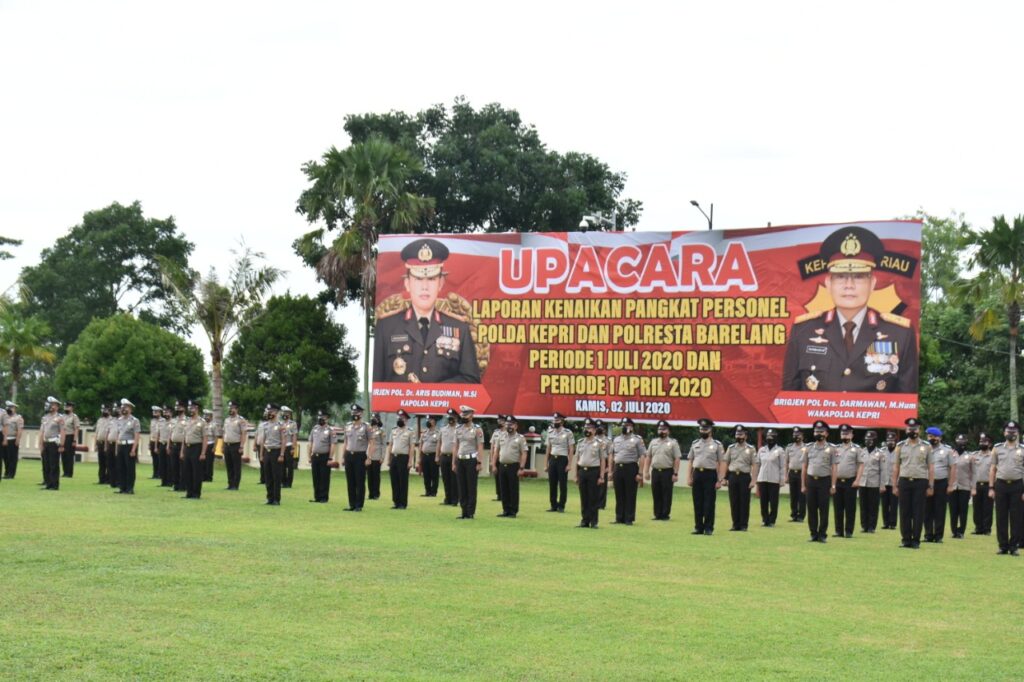 PROBATAM. CO, Batam – Kapolda Kepri Irjen Pol Dr. Aris Budiman, M.Si, hari ini, Kamis (2/7/2020) pagi memimpin Upacara Laporan kenaikan pangkat Personel Polda Kepri dan Polresta Barelang periode 1 Juli 2020 dan periode 1 April 2020 di lapangan Upacara Mapolda Kepri.