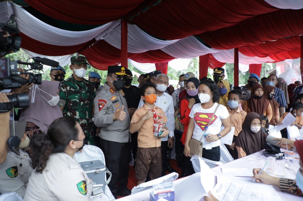 PROBATAM.CO, Asahan – Kapolda Sumatera Utara Irjen. Pol. Panca Putra Simanjuntak, meninjau pelaksanaan vaksinasi anak usia 6-11 Tahun di Kabupaten Asahan, Sumatera Utara.