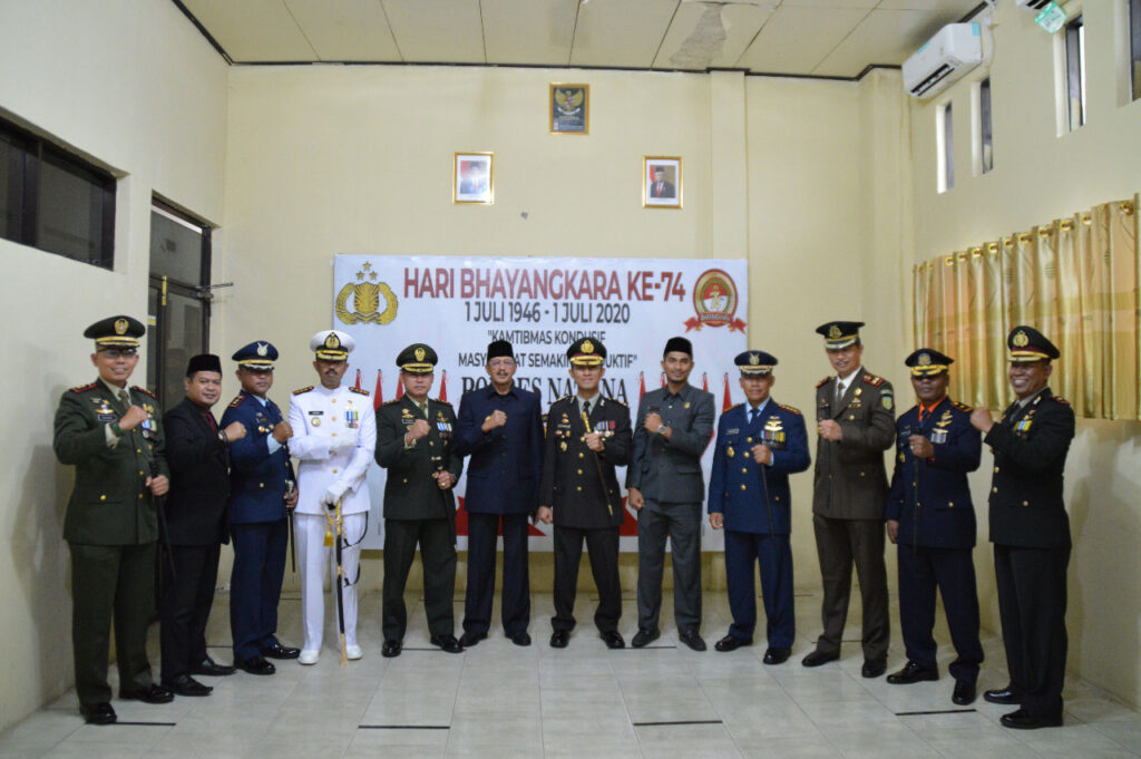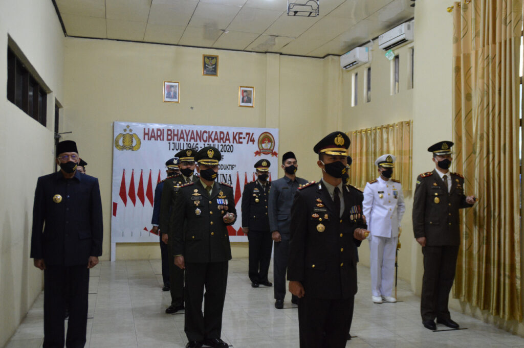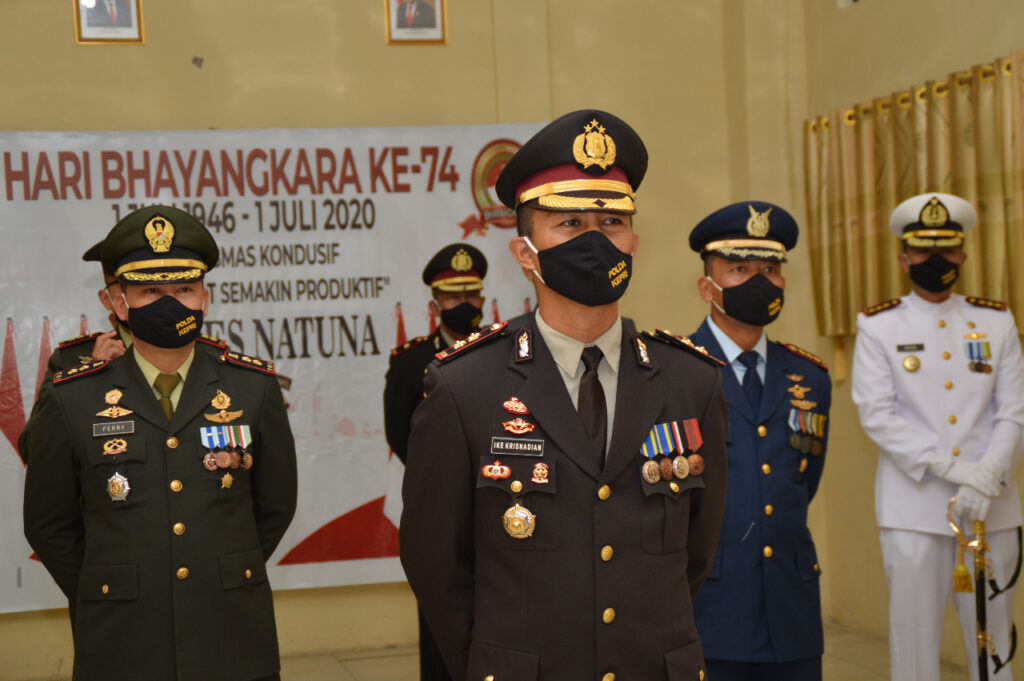 PROBATAM.CO, Natuna- Kapolres Natuna, Bupati Natuna, Ketua DPRD Natuna bersama Forkompinda Natuna, hari in Rabu (1/7/2020) pukul 08.00 wib di Ruang Vicon Polres Natuna melaksanakan Upacara Hari Bhayangkara ke-74 tahun 2020.