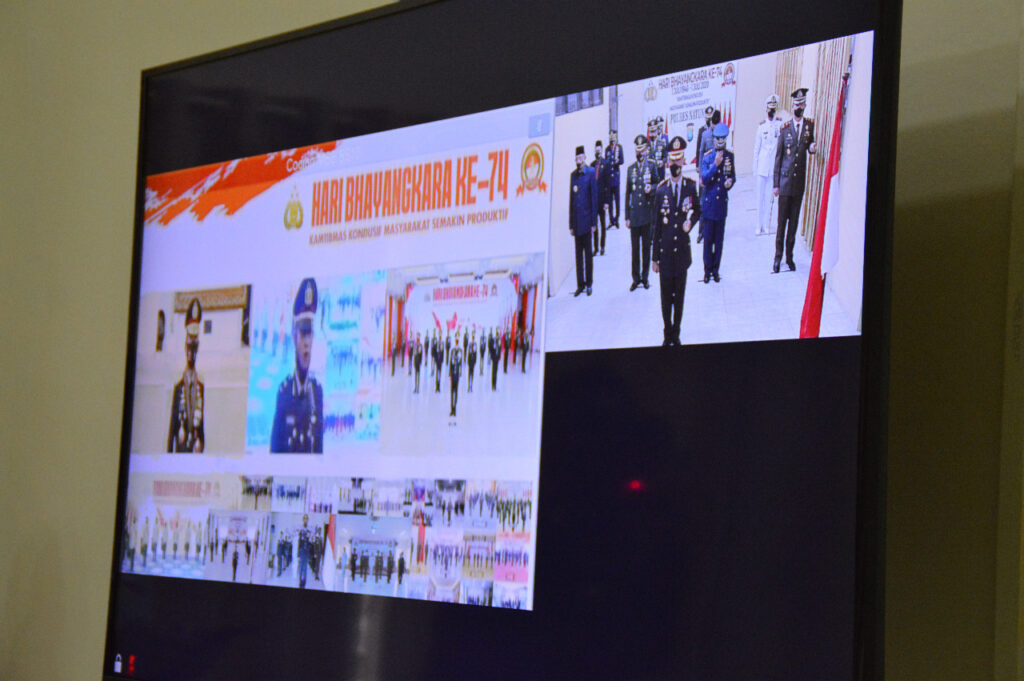 Upacara yang digelar secara serentak di seluruh Indonesia tersebut dilakukan secara virtual atau Live Streaming, Sebagai Inspektur Upacara Presiden Republik Indonesia Ir. H. Joko Widodo dan diikuti oleh Mabes Polri, Polda dan Polres seluruh Indonesia.