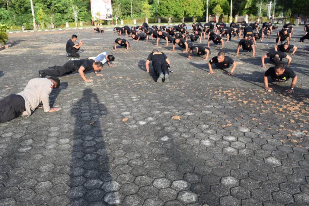 Dijelaskannya, selesai melaksanakan lari sore, dilanjutkan dengan kegiatan pendinginan dan penguatan Push Up bersama di halaman Mapolres Natuna di Ranai.