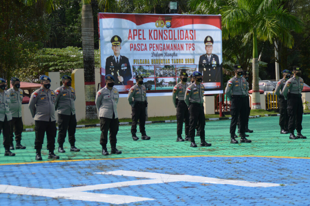 PROBATAM.CO, Natuna – Kaporles Natuna AKBP Ike Krisnadian, S.IK., M.Si, pimpin Apel Konsolidasi Pasca Pendistribusian Logistik, Pungut dan Hitung Suara dalam rangka Operasi Mantap Praja Seligi 2020 di lapangan Apel Polres Natuna, Ranai, Selasa (15/12/2020).