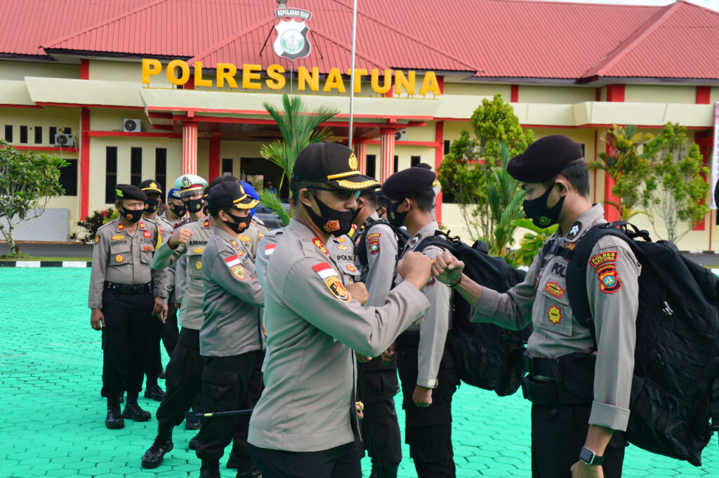 PROBATAM.COM, Natuna – Kapolres Natuna AKBP Ike Krisnadian, S.IK, M.Si, memimpin Apel pelepasan Pasukan Dalam Rangka Backup Poltabes Barelang di Kabupaten Natuna, Provinsi Kepri, Senin (12/10/2020).