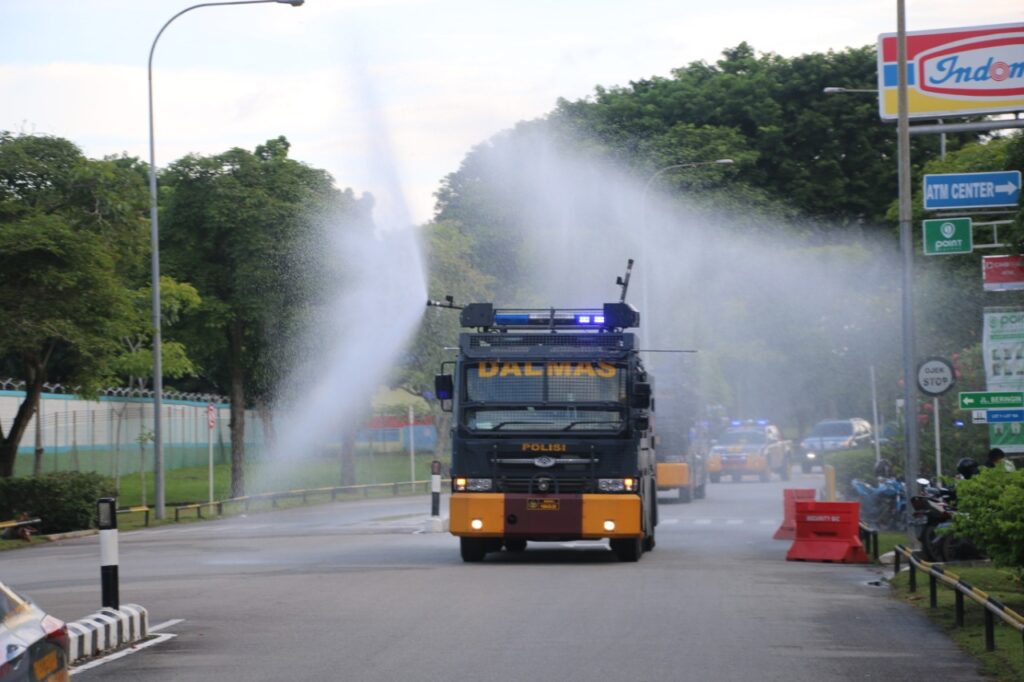 Dan momentum yang terpenting adalah Penyemprotan Disinfektan oleh Satuan Sat Sabhara Polresta Barelang yang dikomandoi oleh Kasat Sabhara Kompol Firdaus, S.Sos bersama Dandim 0316 Batam.