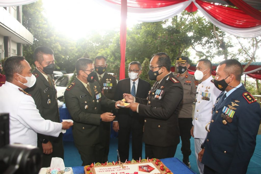 Dalam perayaan HUT TNI Ke-76 ini Kapolresta Barelang beserta jajaran memberikan Surprise Kue Ulang Tahun dan tumpeng yang di berikan kepada Danlanal Batam dan jajaran TNI, serta mengucapkan selamat Ulang Tahun TNI ke- 76 Tahun, semoga TNI semakin Profesional, dalam menjaga kedaulatan dan keutuhan NKRI dan melindungi segenap rakyat dan Bangsa Indonesia secara keseluruhan. Pelaksanaan upacara dilakukan dengan protokol kesehatan yang ketat, mulai dari memakai masker serta menjaga jarak.