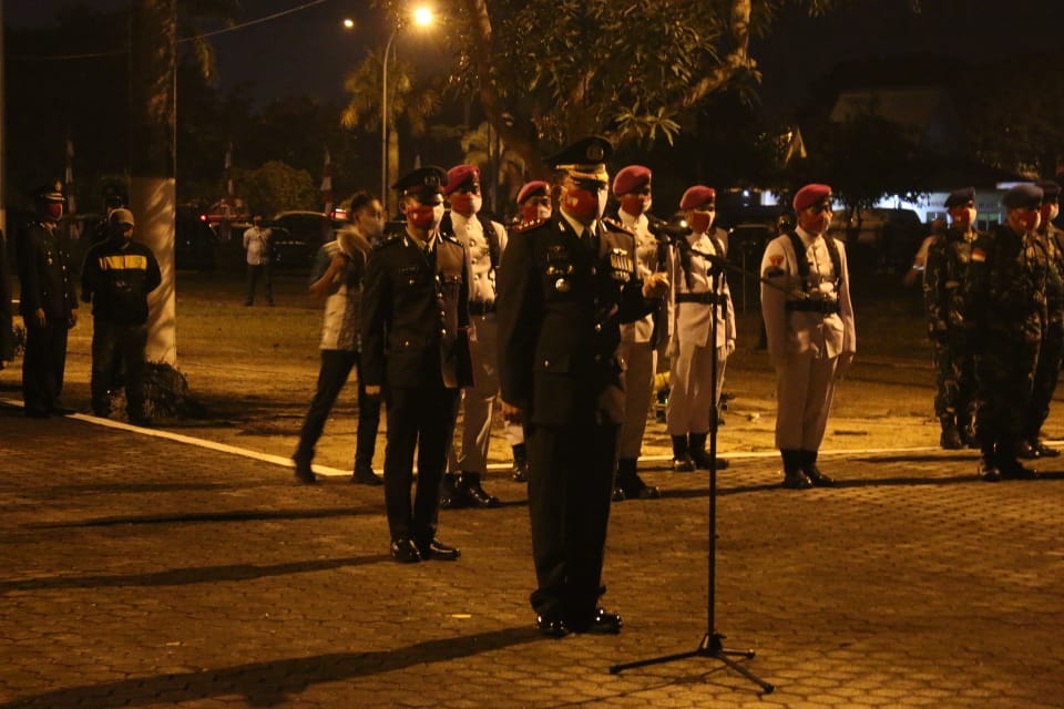 PROBATAM.CO, Batam- Kapolresta Barelang Kombes Pol Purwadi W Anggoro, S.IK, MH, bertindak sebagai Irup upacara Apel Kehormatan dan Renungan Suci Dalam Rangka Hari Ulang Tahun Kemerdekaan RI ke – 75 Kota Batam, TMP Pusara Bakti Bulan Gebang, Batu Aji, Kota Batam, Minggu (16/8/2020) malam.