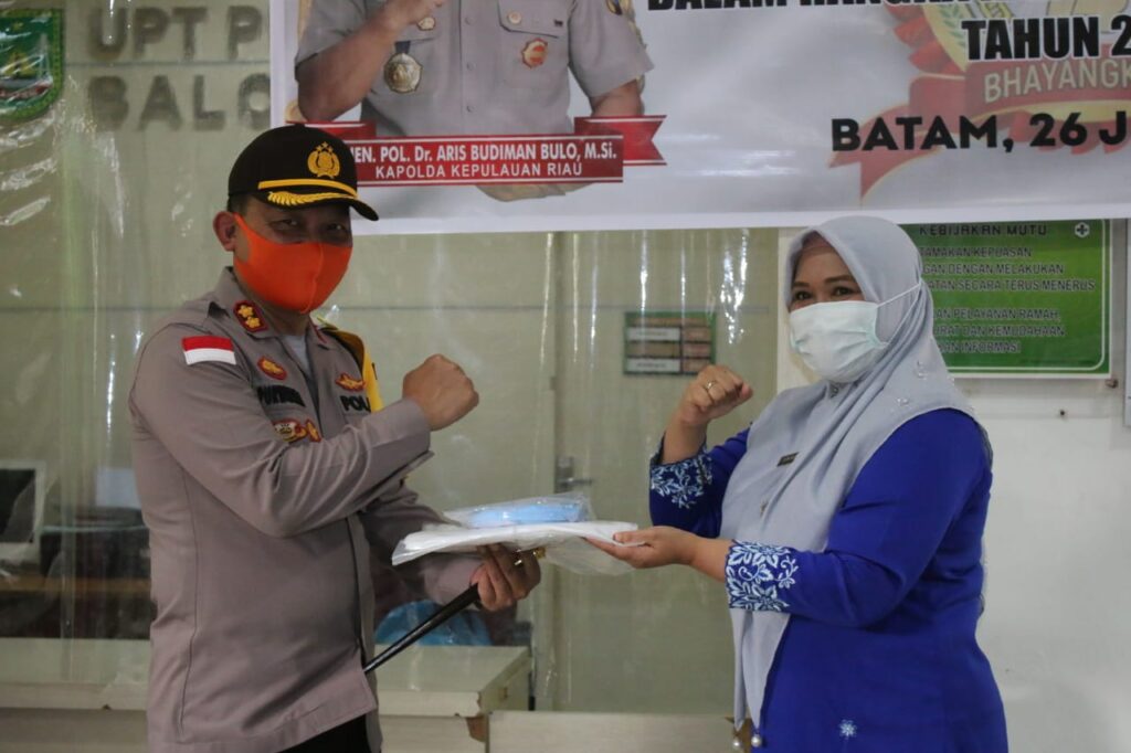 PROBATAM.CO, Batam – Kapolresta Barelang AKBP Purwadi W Anggoro dan Ketua Bhayangkari Cabang Barelang Ny. Sri Purwadi menyerahkan bantuan Alat Pelindung Diri (APD) dari Covid-19 kepada Tenaga Medis Puskesmas Baloi Permai, Kota Batam.