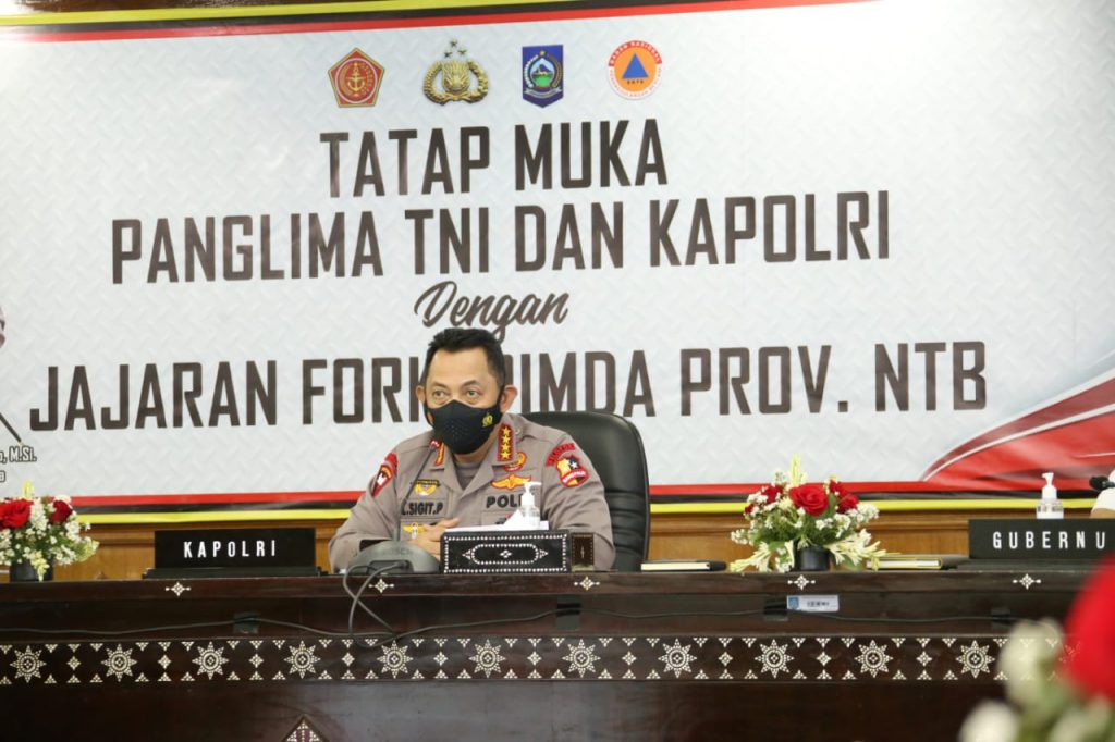 Dalam kesempatan itu, Kapolri menyampaikan apresiasinya terhadap Forkompimda Nusa Tenggara Barat (NTB) yang telah bekerja keras menangani pandemi Covid-19 sehingga di wilayah NTB berdasarkan assesmen terdapat penurunan level PPKM-nya. Adapun saat ini di 5 Kabupaten NTB berada pada Level 3 PPKM sementara 5 Kabupaten lainnya ada di Level 2.