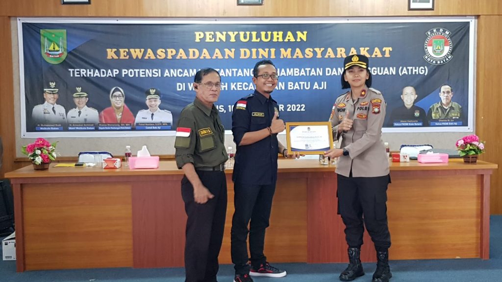 PROBATAM.CO, Batam– Kapolsek Batu Aji Kompol Restia Octane Guchy, SE, S.IK, mengikuti kegiatan Penyuluhan Kewaspadaan Dini Masyarakat Terhadap Potensi Ancaman, Tantangan, Hambatan dan Gangguan di Kecamatan Batu Aji di aula lantai III Kecamatan Batu Aji, Kota Batam, Kamis (10/11/2022) sekira pukul 09.00 WIB ‘ selesai.