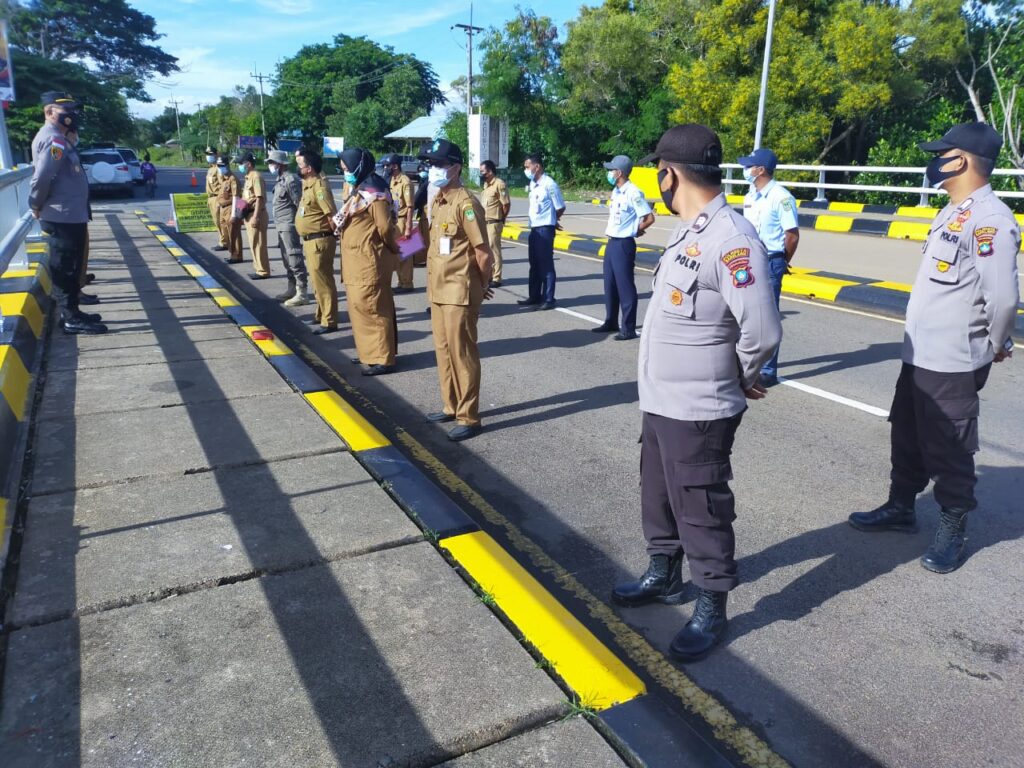 Petugas gabungan penyekatan PPKM Darurat di wilayah hukum Polsek Galang adalah, Jembatan 4 Barelang Tg Kertang, Kelurahan Rempang Cate, Kecamatan Galang, Kota Batam, Senin (12/7/2021). (photo:polsek)