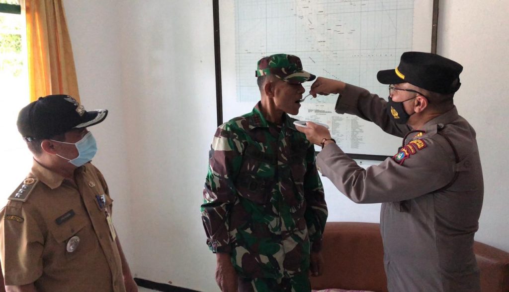 Pemberian Kue dan ucapan selamat HUT TNI Ke-76 dari Kapolsek Galang kepada Danramil 04 Galang di Koramil 04 Galang dilaksanakan di Kelurahan Sembulang, Kecamatan Galang, Kota Batam, hari ini.