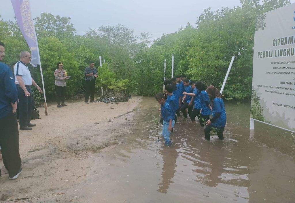 Kegiatan ini ditandai dengan penanaman Bibit Pohon Bakau secara simbolik oleh Nani Hendiarti, Deputi Bidang Koordinasi Pengelolaan Lingkungan dan Kehutanan Kemenko Marves RI di depan Nongsapura Ferry Terminal Batam, Kelurahan Sambau, Kecamatan Nongsa, Kota Batam.
