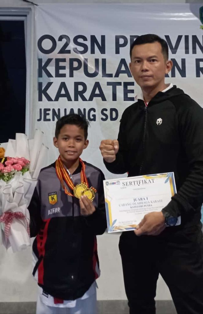Azfar berhasil menjadi Juara 1 Kata dan Juara 1 Kumite Jenjang SD pada ajang O2SN Tingkat Provinsi Kepri yang dilaksanakan tanggal 9 Agustus 2023 di Tanjungpinang.