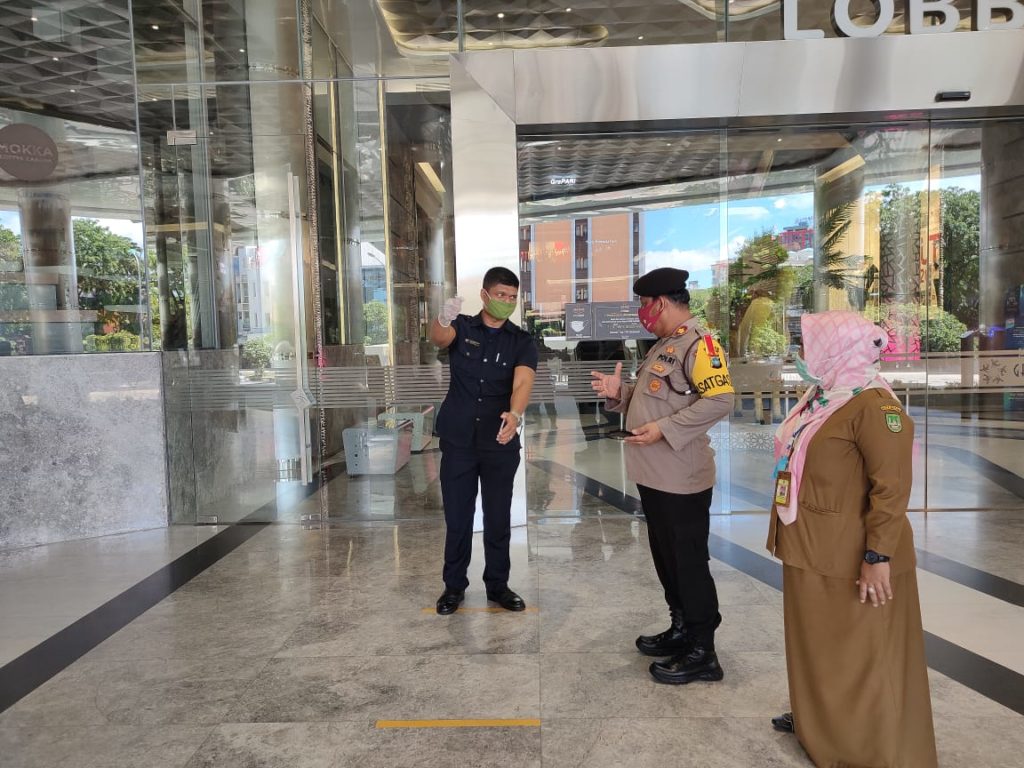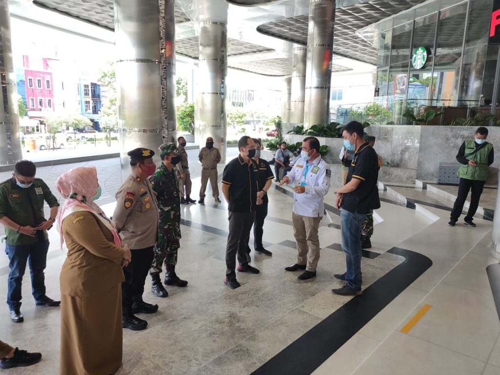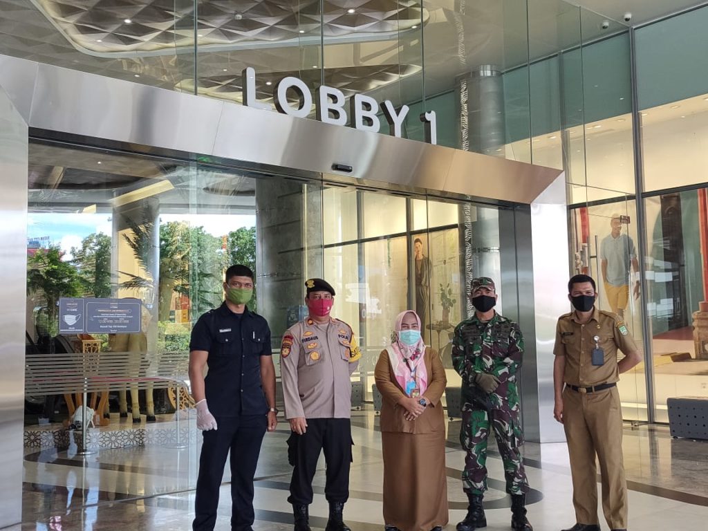 Kadisperindag Kota Batam Gustian Riau bersama Personil Kodim 0316 Batam, Kasat Sabhara Polresta Barelang Kompol Firdaus dan Camat Lubuk Baja di Grand Mall Batam, Selasa (2/6/2020). (Photo:probatam/iin)