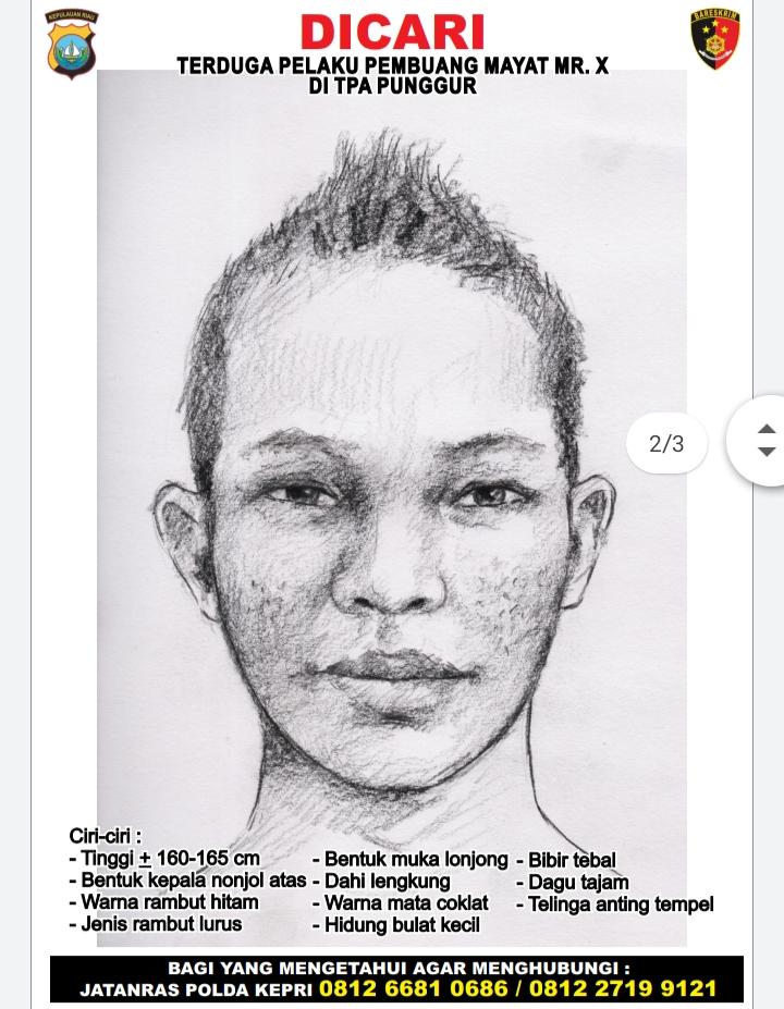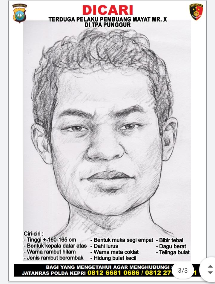 PROBATAM.CO, Batam – Guna mempercepat pengungkapan kasus pembuangan mayat di TPA Punggur (28/10/2020), Ditreskrimum Polda Kepri menyebarkan sketsa terduga pelaku pembuangan mayat, Senin (7/12/2020) di Mapolda Kepri.