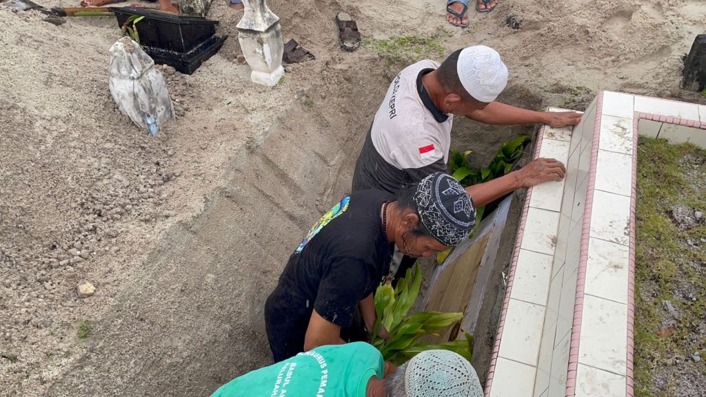 Tidak hanya sampai di situ, Wakapolres Lingga bersama warga masyarakat juga turut serta dalam proses pengantaran jenazah ke Tempat Pemakaman Umum (TPU) Muslim Kampung Telex dan ikut langsung dalam prosesi pemakaman almarhum bapak Syafrizal Bin Husein (50)