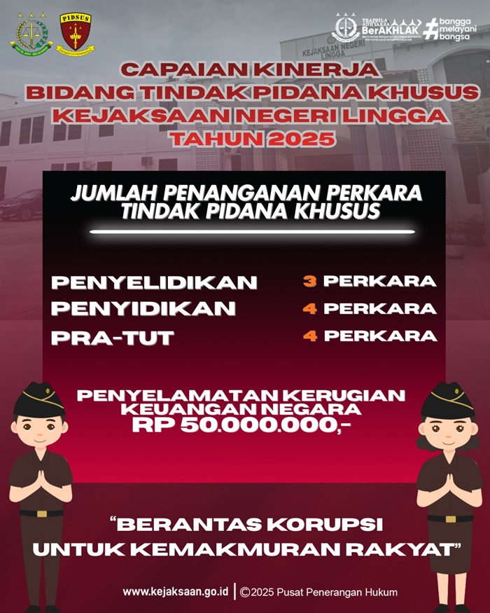 Selain itu Dalam peringatan hari anti korupsi sedunia Kejaksaan Negeri Lingga memaparkan capaian kinerjanya di bidang tindak pidana khusus dengan capaian sebagai berikut :