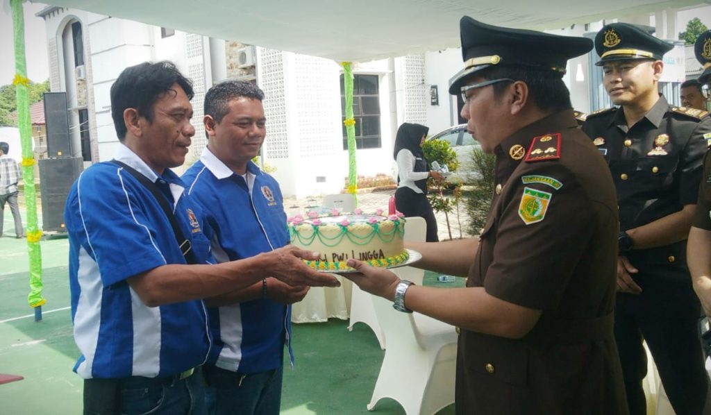 PROBATAM.CO, Lingga – Kepala Kejaksaan Negeri (Kajari) Kabupaten Lingga, Imang Job Marsudi S.H, M.H menyampaikan terima kasih kepada Persatuan Wartawan Indonesia (PWI) Lingga yang sudah memberikan ucapan selamat Hari Bhakti Adhyaksa (HBA) ke-59 dengan memberikan kejutan kue bundar.
