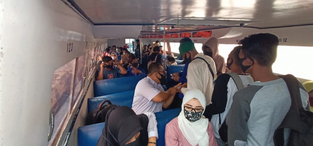 PS. Kanit Binmas Polsek Bunguran Barat Aipda Benget S. menyampaikan himbauan kepada penumpang dan masyarakat Sedanau agar tetap melaksanakan protokol kesehatan seperti wajib menggunakan masker, menjaga jarak dan mencuci tangan guna mencegah penyebaran penularan Covid-19.